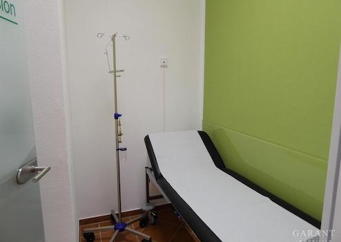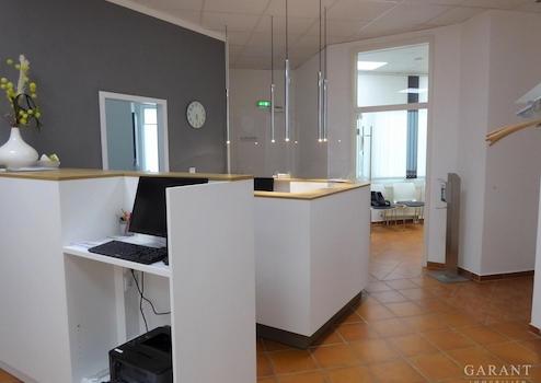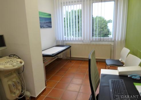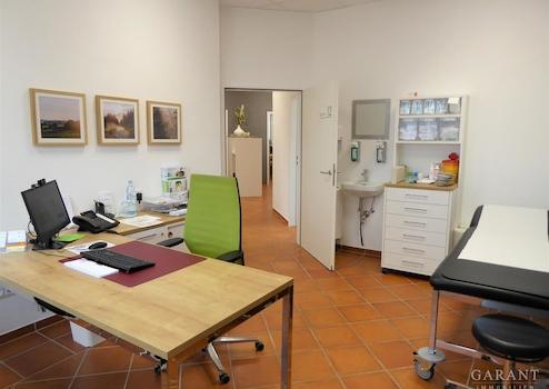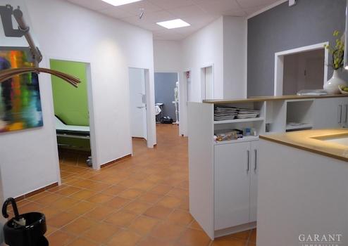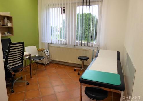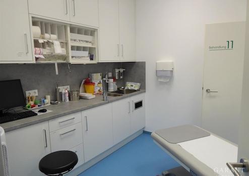 Die Gewerbefläche verfügt über einen großen Empfangsbereich, sieben Behandlungs- bzw. Sprechzimmer, ein Wartezimmer, einen Personal-Aufenthaltsraum, ein Patienten-WC, ein Personal-WC, einen Personal-Umkleideraum und einen Technikraum.