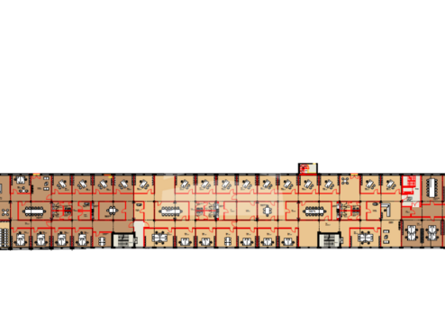 Die Büroflächen auf den Etagen werden über zentrale Eingangsbereiche und Aufzugsanlagen erschlossen. Die Büroflächen können nach dem Raumprofil des Mieters ausgebaut und ausgestattet werden. Insgesamt stehen im 2. Obergeschoss folgende Mietflächen zur Verfügung, die einzeln oder insgesamt angemietet werden können:
