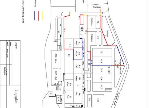 Weiterhin stehen ca. 10.000 m² Lager und Logistikflächen (Kaltlager, Werkhallen, Lagerzelte usw.) sowie ca. 30.000 m² Freifläche zur Verfügung.