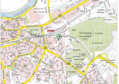 Es handelt sich um ein Teilgrundstück der ehemaligen Niederlassung Offenbach von Mercedes Benz, zur Zeit mit einer Ausstellungs- bzw. Verkaufshalle bebaut .