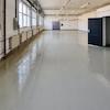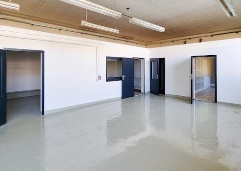 Der Hallenboden ist aus Beton, während die Nebenräume gefliest sind.