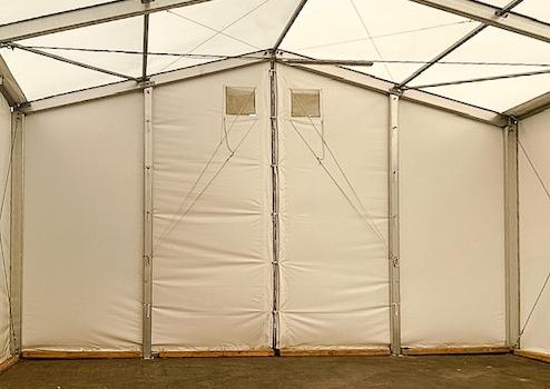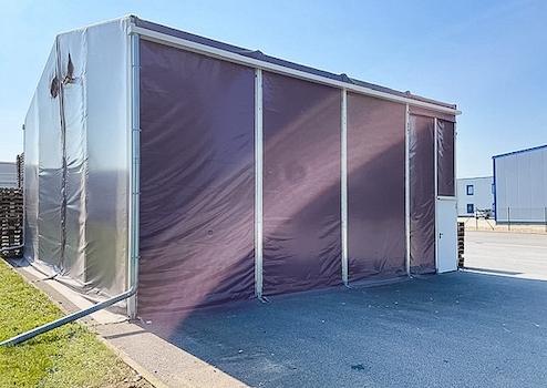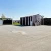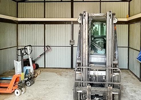 Zur Bebauung gehören eine ca. 100 m² große Zelthalle, eine ca. 25 m² große Unterstellhalle sowie ein beheizter Bürocontainer mit sanitärer Anlage, der kostenfrei angemietet werden kann.