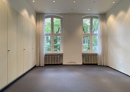 Das Erdgeschoss und die erste Etage erstrecken sich über das Vorderhaus und einen Flügelanbau.. Ein Atrium im Untergeschoss bietet sich in Verbindung mit einem der angrenzenden Räume als Sozialfläche für Ihre Mitarbeiter an.