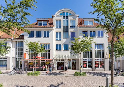 Direkt in der Altstadt liegt das EKZ "Neuer Markt". In diesem Komplex ist die zur Vermietung angebotene Fläche belegen. Im Erdgeschoss des Hauses finden sich eine Passage mit Einzelhandelsflächen und einem Lebensmittelmarkt, in den Obergeschossen sind Büro, Praxisflächen und Wohnungen untergebracht.