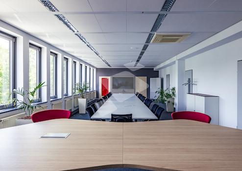 THE FLEX bietet auf vier Geschossen hochwertige und moderne Büroflächen in Ratingen. Das Gebäude überzeugt durch seine hohe Flexibilität, sodass Mietflächen bereits ab ca. 250 m² zur Verfügung stehen und je nach Bedarf kombiniert als auch separat angemietet werden können. Der ehemalige Vodafone-Komplex bietet nicht nur eine inspirierende Arbeitsumgebung, sondern besticht auch durch seine moderne Architektur und kreative Raumgestaltung. Der Business Campus ist die ideale Wahl für Unternehmen, die Wert auf eine ansprechende und funktionale Arbeitsatmosphäre legen.