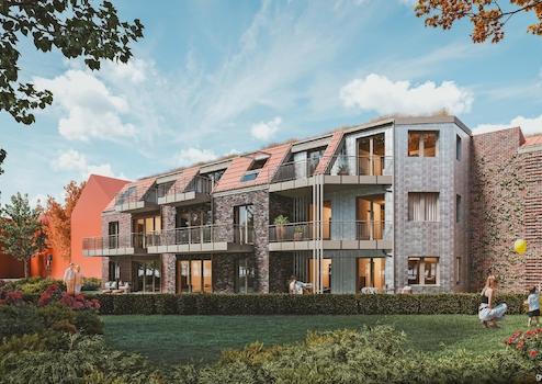 Insgesamt entstehen auf zwei Geschossen und einem Dachgeschoss 15 barrierearme Wohnungen mit einer Wohnfläche von ca. 60 m² (für 2-Zi.-Wohnungen) bis 120 m² (für 3-Zi.-Wohnungen) sowie eine Gewerbeeinheit.