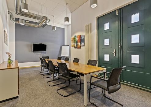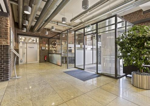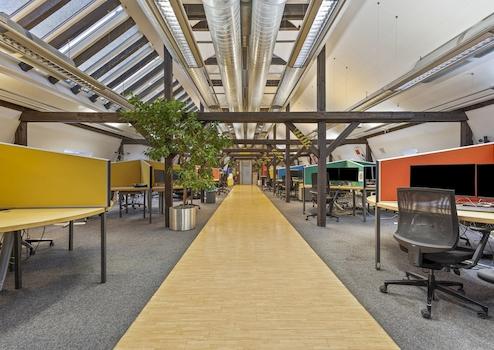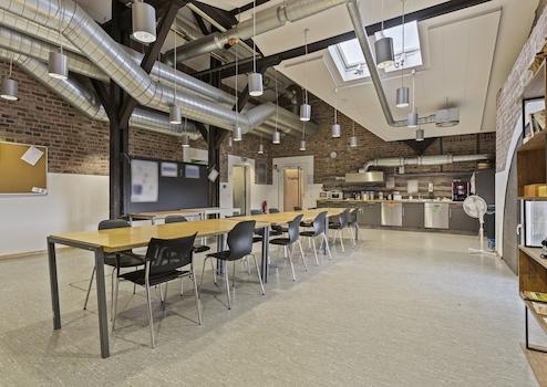 Ferner wird das Flächenangebot mit einem Empfangsbereich, einer Cafeteria sowie zwei Konferenzräumen erweitert. Diese Räumlichkeiten werden gemeinschaftlich mit drei weiteren Einheiten genutzt.