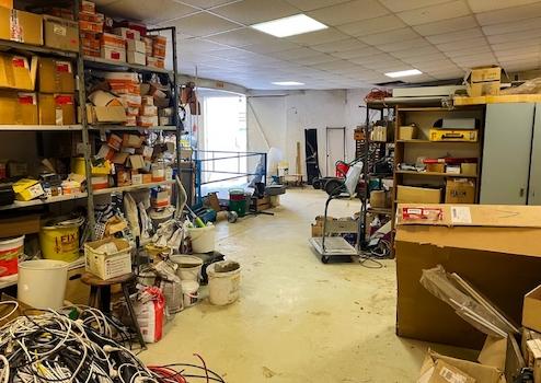 - Büro-, Lager- und Werkstattgebäude (mit Toiletten und Teilkeller) auf West, freistehend, modernisiert um 2000, Ölheizung