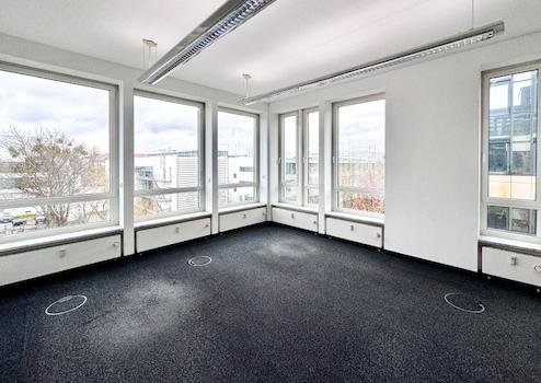 Nicht abgehängte, speicherfähige Decken sorgen für mehr Raumhöhe und ein optimales Raumklima. Das Bürohaus bietet daher ein effizientes Arbeitsumfeld, in dem sich bereits namhafte Unternehmen angesiedelt haben.
