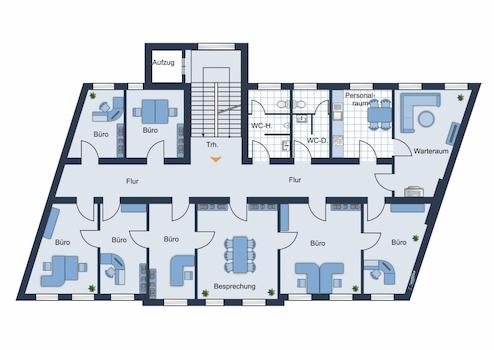- Fahrstuhl (fährt nur in die Zwischenetage, daher nicht behindertengerecht)