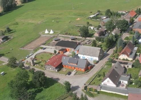 Auf dem einen Luftbild sehen sie das Grundstück auch noch mal von oben. Die Zuwegung, der Reitplatz und die Zelte sind inzwischen abgebaut.