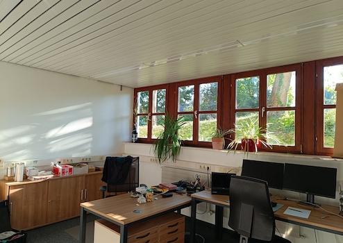 Aktuell ist die Fläche in zwei Werkstätten, zwei Labore, einen großen Konferenzraum sowie mehrere Büros und Lagerräume unterteilt. Zusätzlich stehen zwei separate WCs zur Verfügung. Die vorhandene Raumstruktur bietet eine ausgezeichnete Grundlage für Unternehmen aus den Bereichen Handwerk, Technik, Forschung oder Verwaltung, lässt sich aber bei Bedarf auch flexibel anpassen.