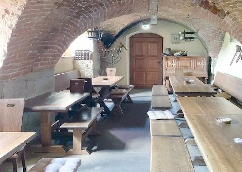 Eine Verbindungstreppe führt direkt in den urigen Braukeller, der sich ideal für besondere gastronomische Erlebnisse eignet.