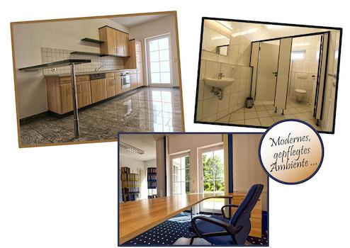 Im Erdgeschoss befinden sich zwei große Büro-/Praxisräume, ein Besprechungsraum sowie neben schöner Teeküche, auch ein großer Mehrzweckraum und WC-Anlage.