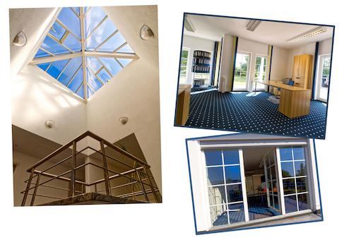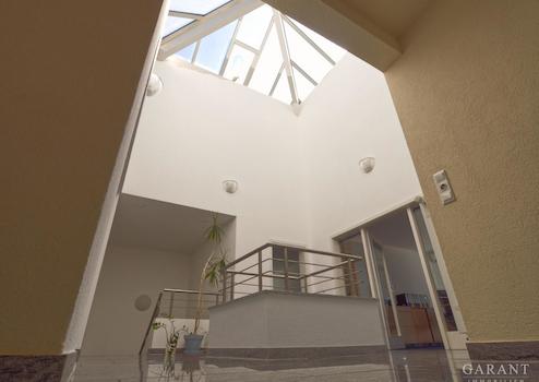 Ein besonderes Highlight dieses Objekts ist die architektonisch ausgefallene Lichtkuppel, welche das Tageslicht bis in den großzügigen Empfangsbereich im Erdgeschoss einfallen lässt.