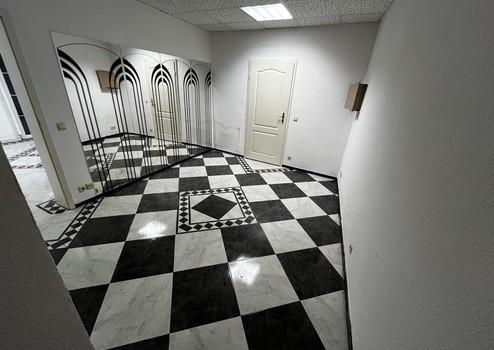 Boden: Der gesamte Bereich ist mit edlem brasilianischem Marmor gefliest und verleiht der Fläche eine luxuriöse Ausstrahlung.