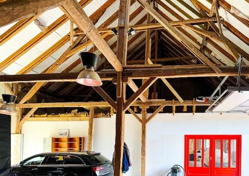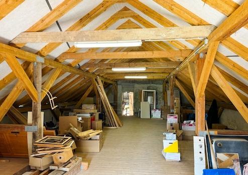 - Ostflügel (ehem. Scheune, traufseitig an der Straße) mit Lager-/Ausstellungsfläche sowohl im Erdgeschoss als auch im Dachgeschoss (jeweils ca. 100 m²)