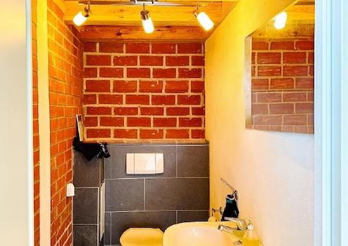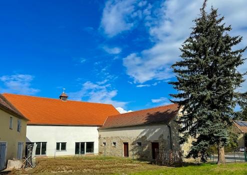 - Nordflügel (ca. 290 m², ehem. Stallgebäude) giebelseitig an der Straße) mit Halle, Werkstatt, Büro und WC im Erdgeschoss, Dachgeschoss ausbaubar