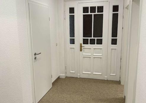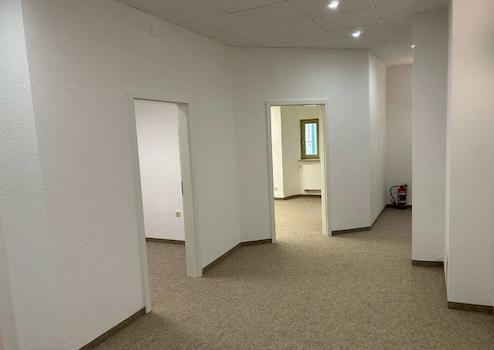 Über einen großzügigen Flur kommen wir zu zwei weiteren Büro-/ Praxisräumen und drei kleinen Räumen ohne Fenster, die als Lager o.ä. genutzt werden können. In einem der Lager- bzw. Abstellräumen wurde ein Wasseranschluss installiert.