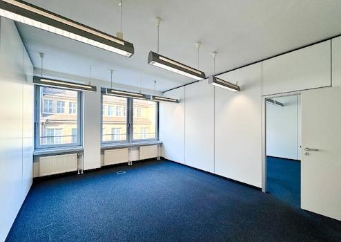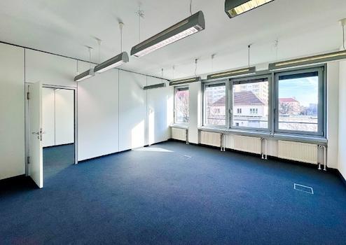 Der große Vorteil ist die Flexibilität des vorhandenen Trennwandsystem. Dieses System lässt Umbaumaßnahmen für die Anpassung der Mieträume entsprechend Ihren Anforderungen zu. So sparen Sie Mietfläche und müssen keine unnützen Flächen anmieten. Ein außen angebrachter Blendschutz lässt sich nach Bedarf herunterfahren. Die vorhandene Teeküche und sanitären Einrichtungen haben einen modernen Standard.