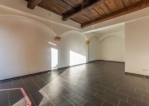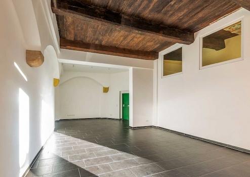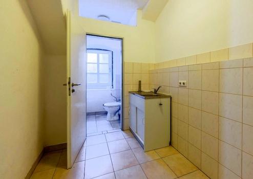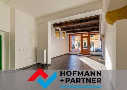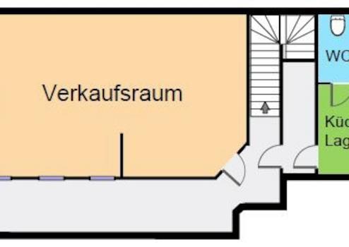 Der ca. 42 m² große Verkaufsraum besitzt eine voll verglaste Schaufensterfront mit Ladeneingangstür zur Straße. Die gut erhaltene Holzbalkendecke und die historischen Sandsteinelemente verleihen dem Raum ein besonders charmantes Ambiente. Im hinteren Bereich des Verkaufsraumes führt eine Tür zum Hausflur, über welchen Sie Lager, Teeküche und die Toilette erreichen.
