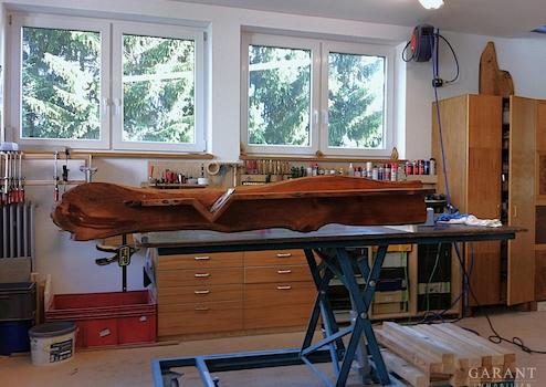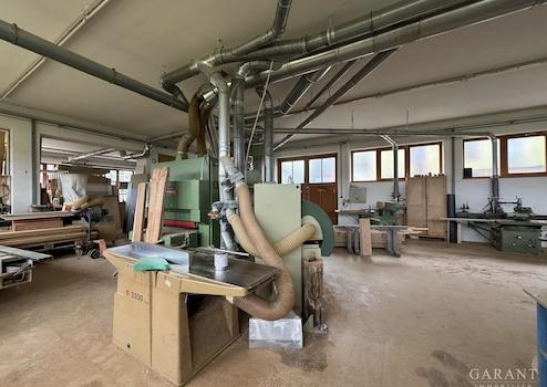 Das Objekt steht mit der kompletten Ausstattung inklusive Maschinen und Holzlager zum Verkauf.