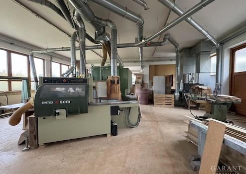 Die drei zusammenhängenden Werkstatt- und Lagergebäude stammen aus den Jahren 1975, 1990 und 2007 und befinden sich in sehr gutem Zustand. Der überaus geräumige Maschinenraum ist sehr hell mit seinen großen 2-fach isolierverglasten Holzfenstern, im Bankraum wurden 2017 3-fach verglaste Kunststofffenster eingebaut. Der 2007 erbaute Anbau verfügt über einen Vollwärmeschutz. Beheizt werden das Schreinereigebäude und die Wohnung über eine Hackschnitzelheizung aus dem Jahr 2022.