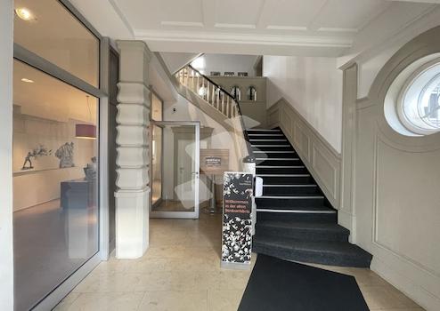 Das wunderschöne denkmalgeschützte Objekt befindet sich im Herzen Düsseldorfs - Oberkassel. Mit direkter Lage am Belsenplatz, hat man eine sofortige und praktische Anbindung an die öffentlichen Verkehrsmittel. Durch das repräsentative Treppenhaus erlangt man einen schnellen Eindruck des charmanten Gebäudes, welches ebenfalss hochwertige Glaseinbauten enthält.