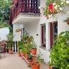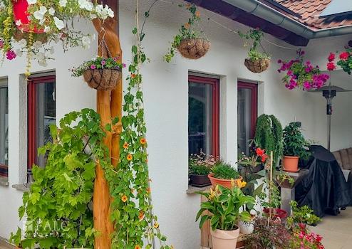 Durch ein elektrisches Rolltor fahren Sie in den Innenhof, auf dem Platz für 4-5 Pkw Stellplätze ist. Neben dem Hauseingang ist die Garage, die Platz für einen Pkw bietet und oberhalb einer eingezogenen Zwischendecke noch zusätzlichen Stauraum.