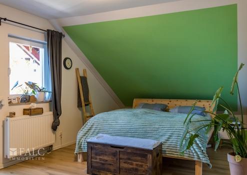 Im Dachgeschoss finden Sie 4 Schlafzimmer, ein kleines Bad und einen Abstellraum. Von den beiden Zimmern zur Vorderseite gelangen Sie auf den Balkon, von dem aus man einen herrlichen Ausblick in Richtung Fuchsturm hat.