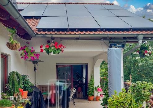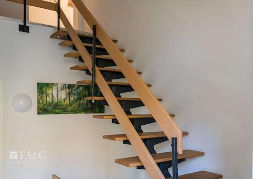 Der große Tunnel-Kamin zwischen Wohn- und Esszimmer verfügt über eine Wassertasche und einen großen Pufferspeicher, damit wird das gesamte Haus über Heizkörper beheizt und gleichzeitig Warmwasser bereitet. Die ursprüngliche Gasheizung bildet noch die Ergänzung bzw. das backup für das Heizsystem. Eine Solaranlage und eine 16 kWp PV-Anlage mit 10 kWh Speicher ergänzen die Haustechnik nachhaltig. Dadurch hat das Gebäude einen hervorragenden Energieverbrauchswert. Die schönen Holzfenster mit 2 Scheiben-Thermoverglasung verfügen alle über Rollläden als sommerlicher Hitzeschutz aber auch Einbruchschutz.