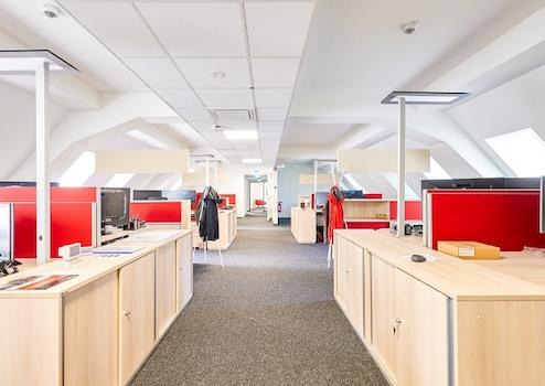 Zur Anmietung steht eine neu sanierte Bürofläche von ca. 878 m² im 1. Obergeschoss.