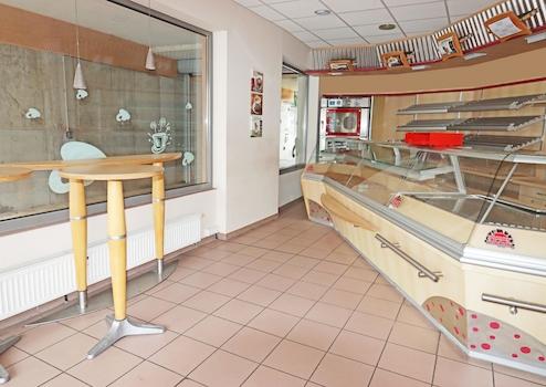 Sie teilt sich auf in einen Verkaufsraum sowie einen zweiten Bereich inkl. Flur, Personalraum, und WC.