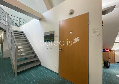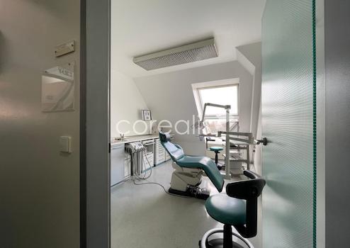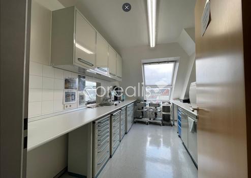 Die Mietfläche im 4.OG wird zurzeit noch von einem Zahnarzt genutzt und besitzt somit bereits eine Praxisgenehmigung. Jedoch sind neben einer Zahnarztpraxis auch andere Fachbereiche sowie ein Bürobetrieb denkbar. Innerhalb der Mietfläche herrscht im Status Quo eine kleinteilge Raumaufteilung. Zudem liegen 2 Fluchtwege vor und ein zusätzliches Dachgeschoss, in welchem die Büros ansässig sind.