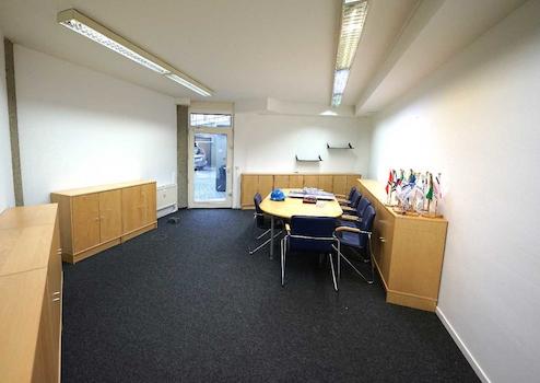 Im hellen und mit großen Fenstern ausgestatteten Untergeschoss (Souterrain) steht Ihnen eine Bürofläche mit ca. 265 m² zur Verfügung. Die Fläche ist bequem mit dem Aufzug und ebenerdig über die Tiefgarage zu erreichen. Die Fläche ist derzeit unterteilt in fünf Einzelbüros, einen Service- und Kopierraum, eine Teeküche und eine Toilettenanlage. Die Aufteilung ist flexibel und kann ebenso wie die gesmate Austattung den Anforderungen des neuen Mieters angepasst werden.