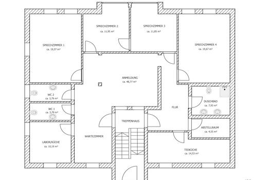• Praxisräume mit ca. 152 m² Wohnfläche im Hochparterre