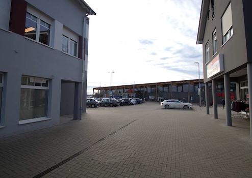 Direkt vor dem Gebäude befindet sich ein gemeinschaftlich genutzter Hauptparkplatz, der Kunden und Besuchern kurze Wege und eine angenehme Erreichbarkeit bietet.