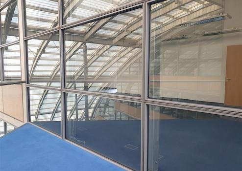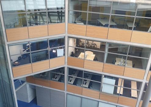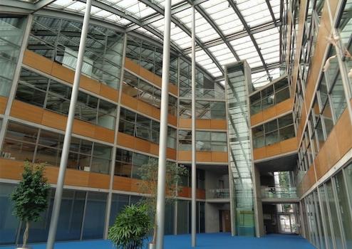 Das Gebäude verfügt über ein Zutrittskontrollsystem und im großzügigen Atriums-Eingangsbereich gibt es einen Empfang mit Postdienst.