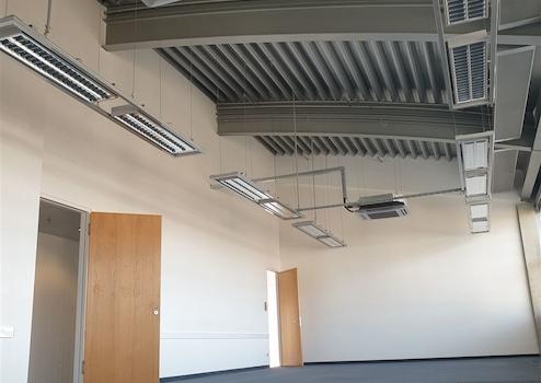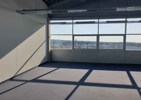Die Mietfläche ist z. Zt. in große Seminar- und Schulungsräume aufgeteilt. Die Raumaufteilung ist prinzipiell variabel und kann nach Ihren Anforderungen z. B. in 12 Einzel/Doppel- und Mehrplatzbüros geändert werden.