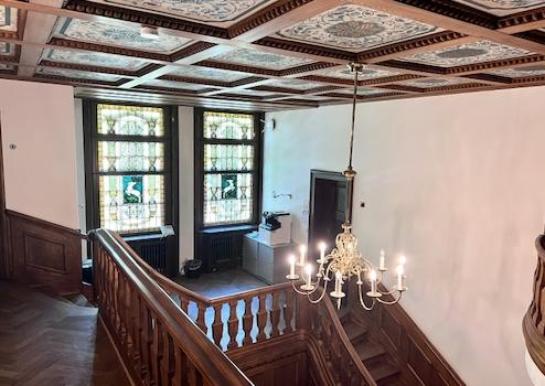 Stuckdecken, Holzvertäfelungen und Stiltüren bereichern das Erscheinungsbild.