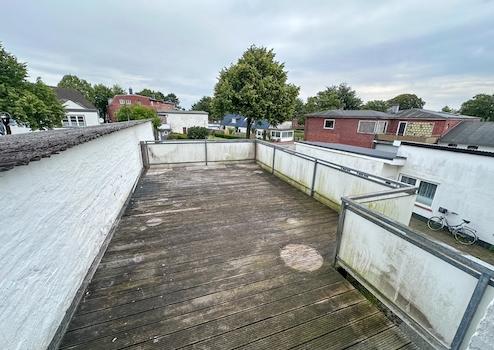 Über die Wohnung im Obergeschoss gelangen Sie auf die Dachterrasse, die sich auf dem Gewerbeteil befindet.