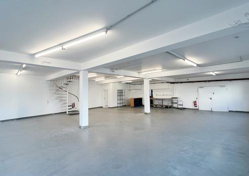 Die Gewerbeeinheit ist aufgeteilt in eine Bürofläche im 1. OG, sowie eine große Lagerhalle im EG. Diese sind über eine Wendeltreppe verbunden und können ebenfalls durch den Gebäudeflur separat erreicht werden. Das Büro ist mit 2 separaten Tagungsräumen/Büros, sowie 2 separaten WC´s ausgestattet und bietet eine Fläche von ca. 228m². Die Hauptfläche des Büros eignet sich ideal als Showroom oder Lagerverkauf für Ihre Kunden. Ebenfalls bietet Ihnen die Gewerbeeinheit einen Küchenbereich für die Mittagspause oder den Kaffee zwischen den Terminen. Im Erdgeschoss dieser Einheit befindet sich die Lagerfläche mit ca. 243m². Diese teilt sich wie folgt auf: WC, Lagerraum für Akten o.ä., Lagerhalle und Toreinfahrt.