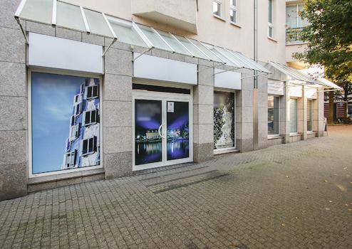 Die großen Schaufenster setzen Ihr Angebot ins rechte Licht und erhellen das gesamte Lokal offen und großzügig.