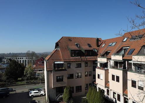 Es befindet sich im 2. OG eines preisgekrönten Geschäftshauses in der Nähe des Ortszentrums. Trotzdem sind Sie schnell auf der Autobahn.