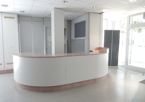 Arkadenfront, Automatik-Eingangsschiebetüre, Akustikdecke inkl. Beleuchtung,
