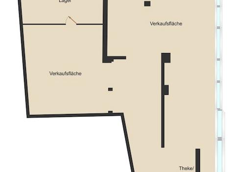 Die großzügige Verkaufsfläche von etwa ca. 215 m² wird durch einen ca. 52 m² großen Lagerbereich, ein rund ca. 18 m² großes Büro sowie einen Personalraum mit Pausenbereich, WC und Waschbecken auf etwa 9 m² ergänzt.