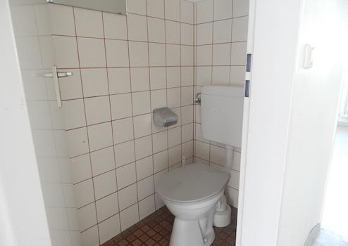 und etwa 9 qm Pausenraum inkl. einem Toilettenraum mit Waschbecken.