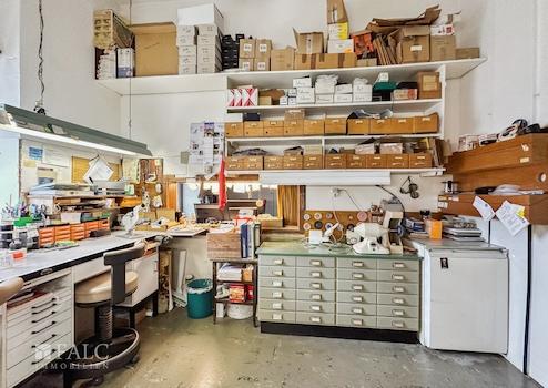 Zwei Nebenräume dienen derzeit als Werkstatt und Büro. Eine Toilette mit Vorraum ist ebenfalls vorhanden. Öffentliche Parkplätze für Ihre Kunden befinden sich ganz bequem direkt vor dem Ladenlokal entlang der Straße.