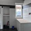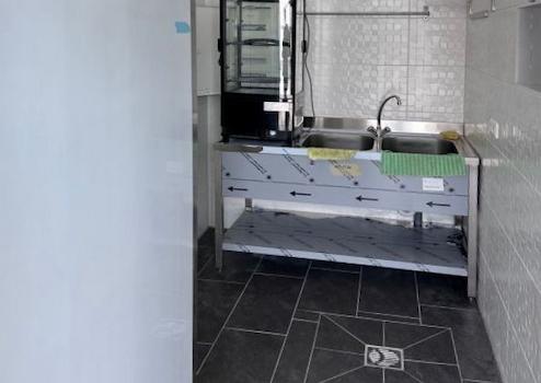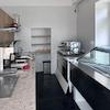 Der geplante Imbiss/Pizza ist ebenfalls gefliest und hat einen Kundenzugang über eine doppelflügelige Glastüre und einen Personaleingang. Es besteht die Möglichkeit die Fläche mit der Eisdiele durch einen Durchgang zusammenzulegen.