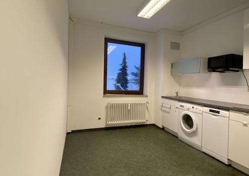 Alle Räume sind vom Flur aus begehbar und überwiegend mit deckenhohen Schränken ausgestattet. Zwei Büroräume sind mit einer Schiebetüre verbunden. Die EDV- und Telefonverkabelung verläuft in Kabelkanälen. Deckenleuchten sind vorhanden. Die Teeküche ist mit einer Küchenzeile mit Ceranfeld, Kühl- und Gefrierkombination, Geschirrspüler, Mikrowelle und Waschmaschine ausgestattet. Der Serverraum ist klimatisiert. Die WCs sind gefliest.